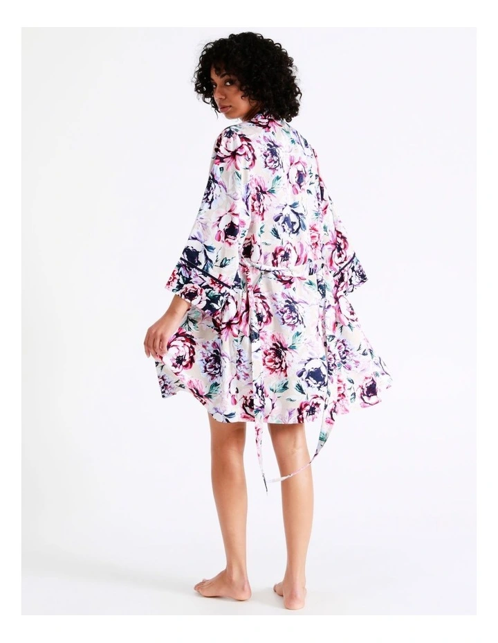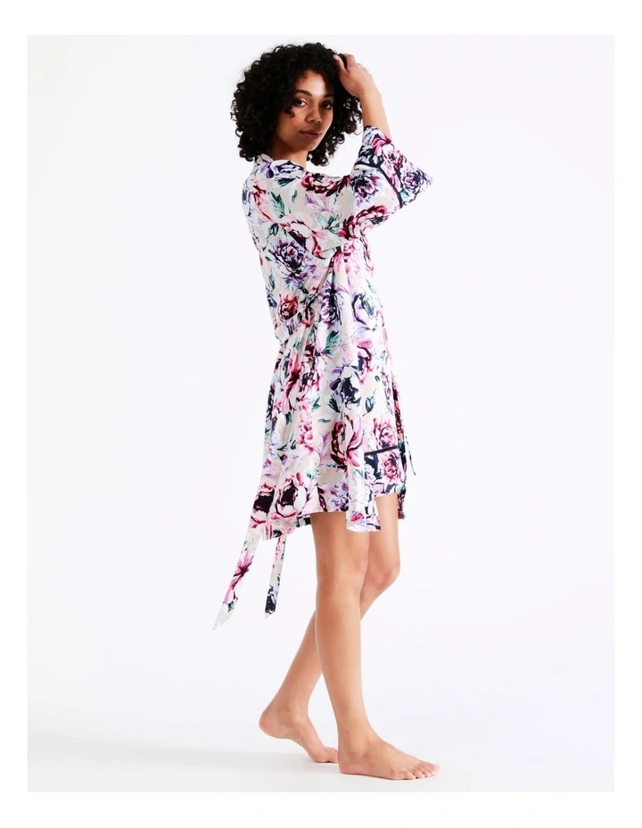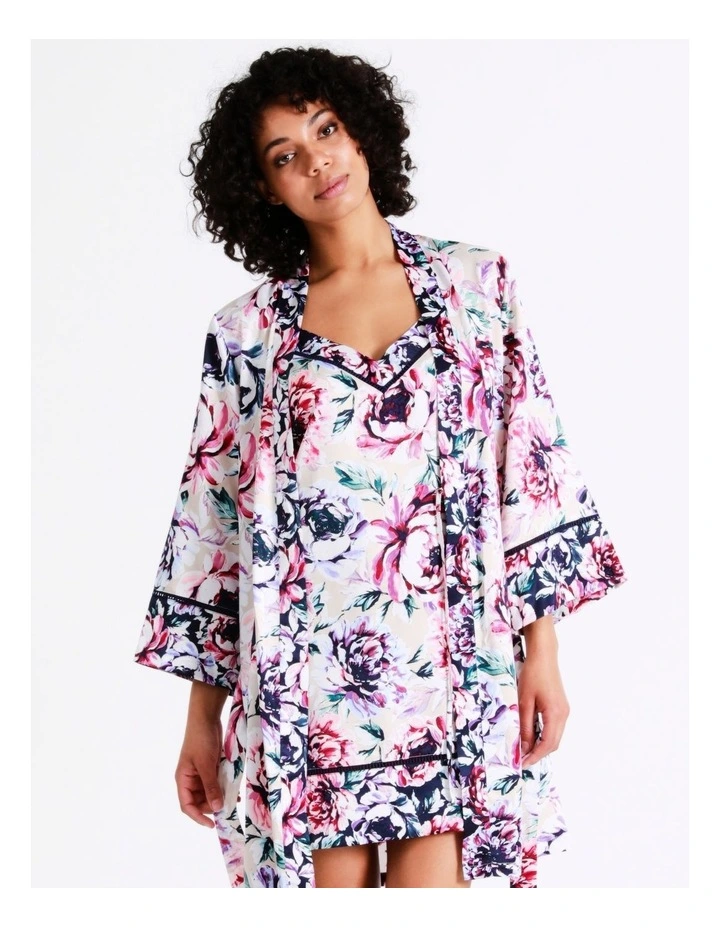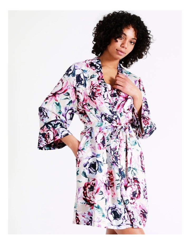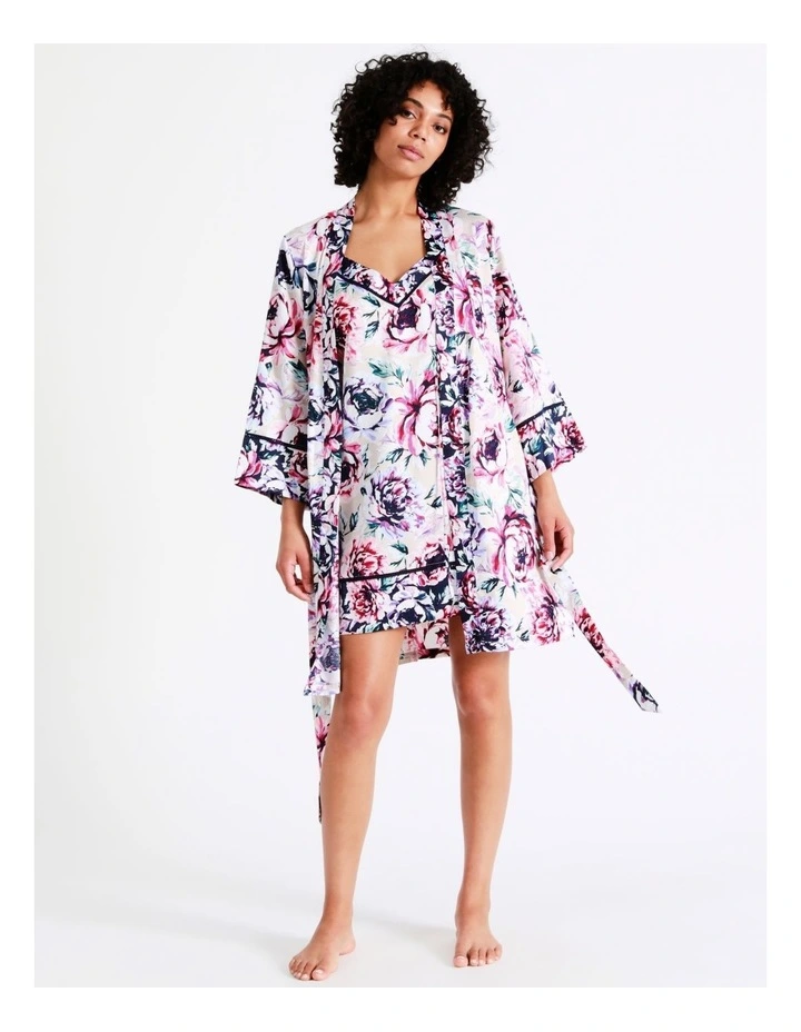 Slip into something comfortable with a silky smooth robe. This robe has a satin-look finish and is crafted from a soft and lightweight fabrication for maximum comfort. Wear over our ladder lace top and shorts for the perfect loungewear look.ย