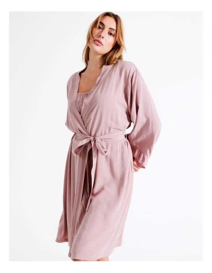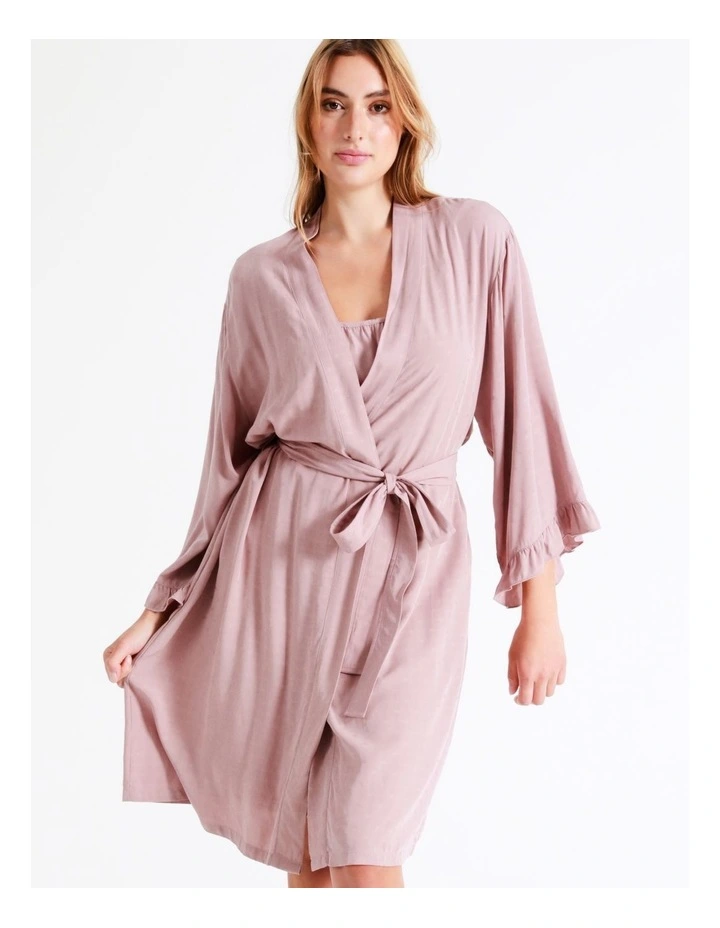 Pamper yourself with a soft-touch robe. This robe has a satin-look finish and is decorated with frill sleeves. Perfect for wearing on its own or over your favourite pyjamas.