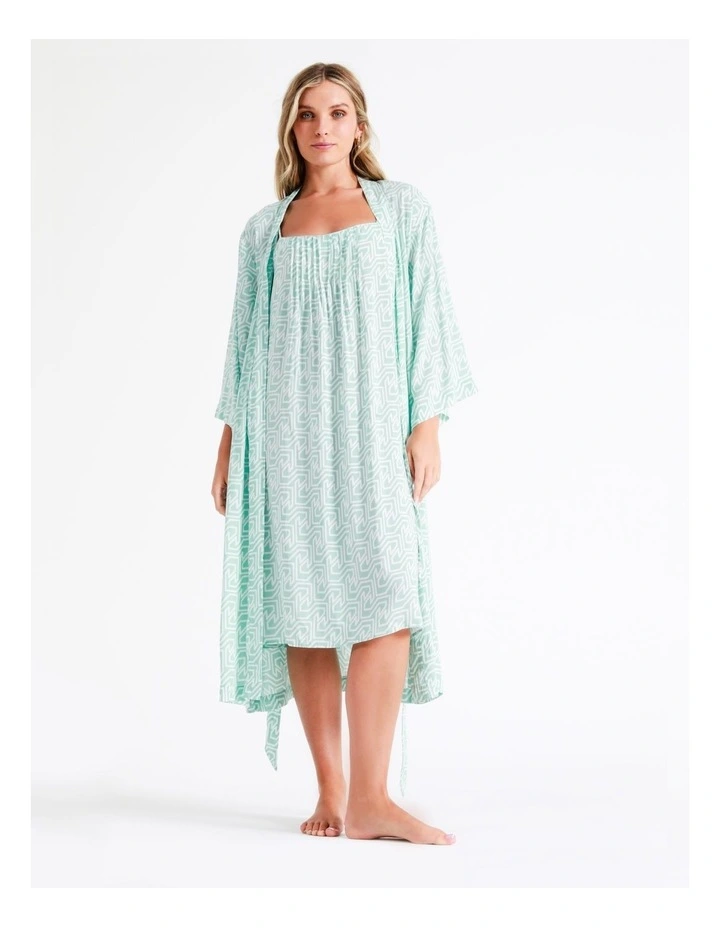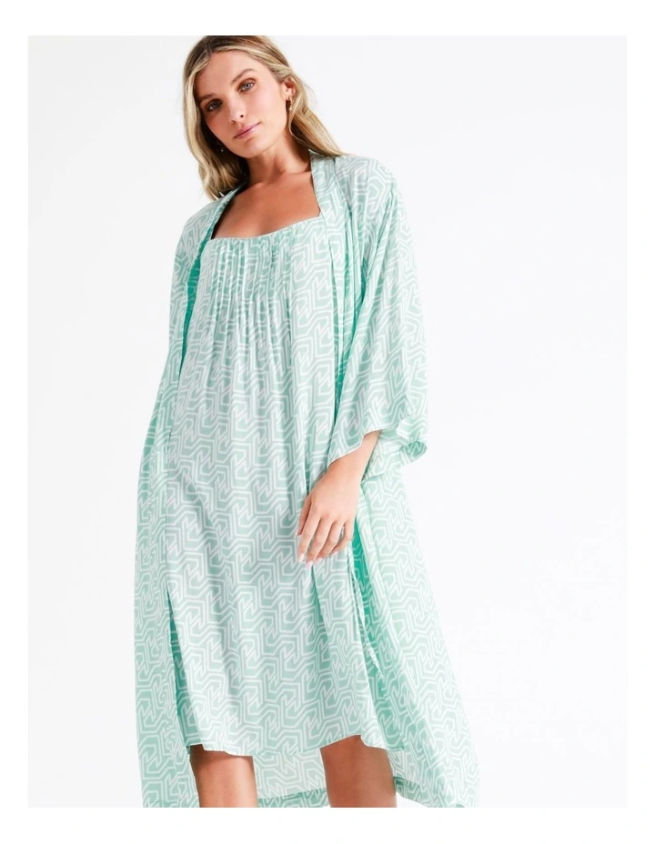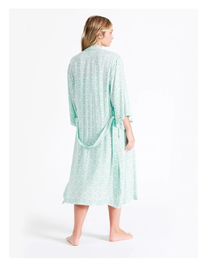 Pamper yourself with a soft-touch robe. This robe has a geo print finish and is a maxi length. Perfect for wearing on its own or over your favourite pyjamas.ย
