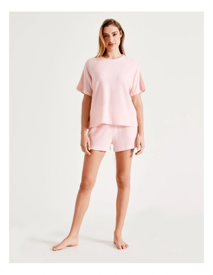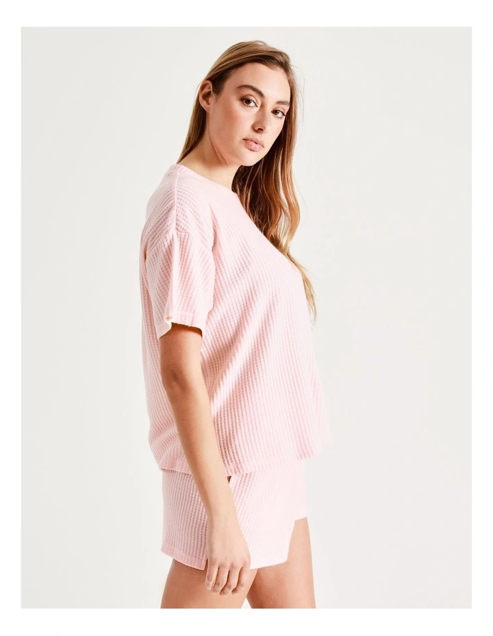 Chloe & LolaΒ Waffle Short Sleeve Top in Pink