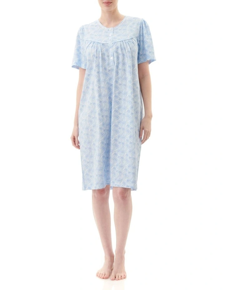 All over fresh blue print in this short sleeve short nightie.ย Featuring a curved yoke with self piping. Self binding on the neckline with narrow lace trim underneath.ย Front and back yokes with gathers provides extra comfort. Wear with the Talia Brunchcoat for a gorgeous sleepwear outfit.ย ย ย ย ย ย ย ย ย ย ย ย ย ย ย ย ย ย ย ย ย ย ย ย ย ย ย ย ย ย ย ย ย ย ย ย ย ย ย ย ย