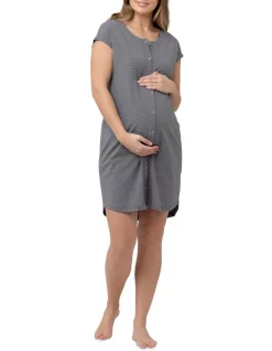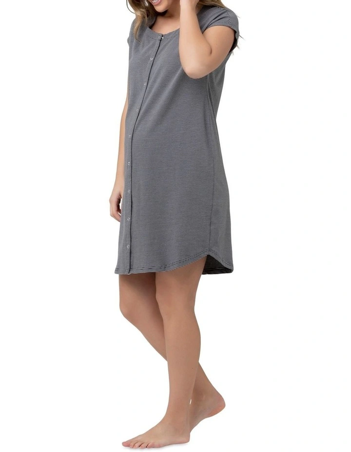Talk about a hospital bag hero! TheΒ Blake Organic Short Sleeve NightieΒ features a full button through placket providing all the skin to skin contact you need after your baby has arrived. Cut from a super soft, stretch jersey knit, and features a yarn dyed stripe and extended sleeves.