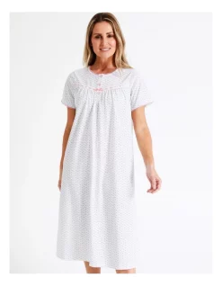 Kick back and relax in a soft-touch nightie. This nightie has a super soft hand feel for comfortable wear, with short sleeves and a mid length cut. Pair with your favourite slippers for maximum comfort.