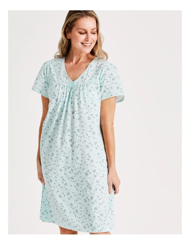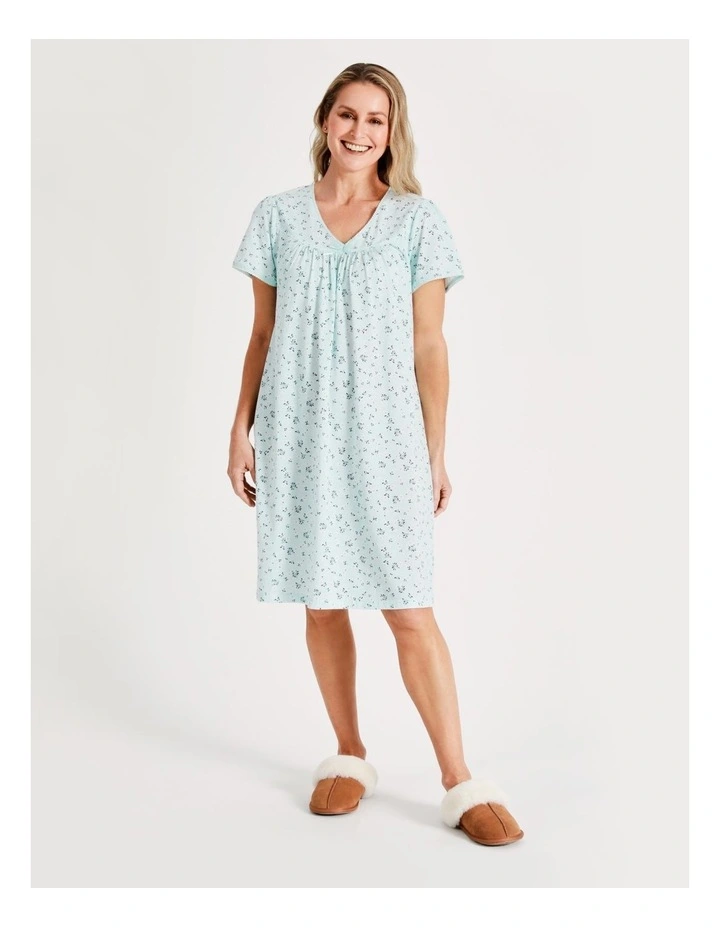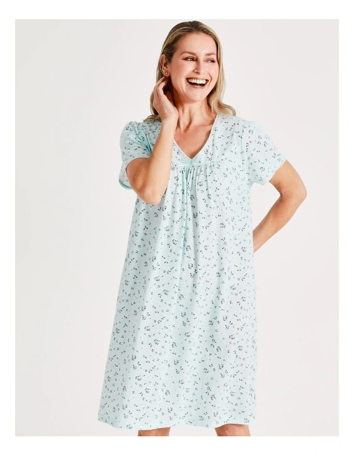 Soho Knit Short Length Short Sleeve Nightie in Seafoam