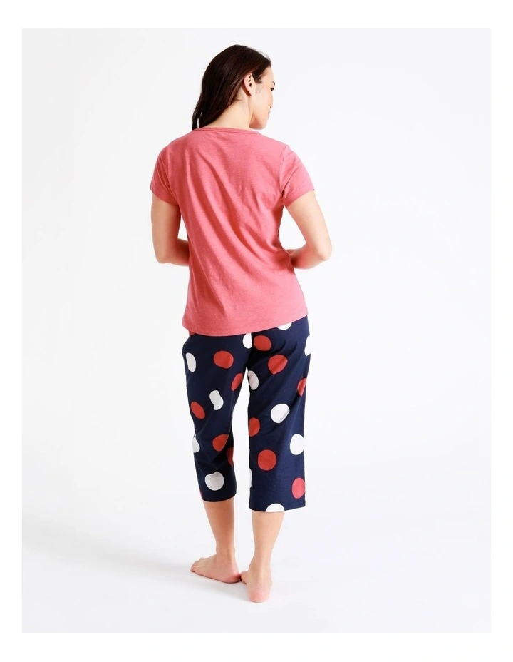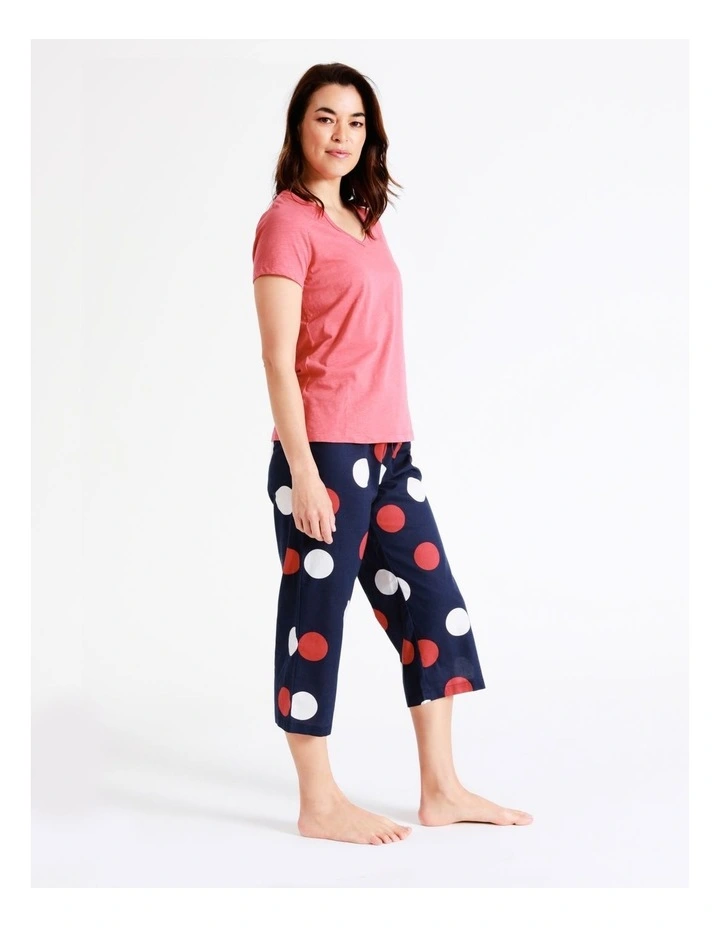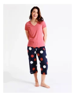 Kick back and relax with our soft-touch pyjama set. This set is crafted from organic cotton for a super soft and breathable fit, with a V-neckline on the top and a 3/4 length, relaxed fit on the bottoms. Pair with your favourite slippers for maximum comfort.