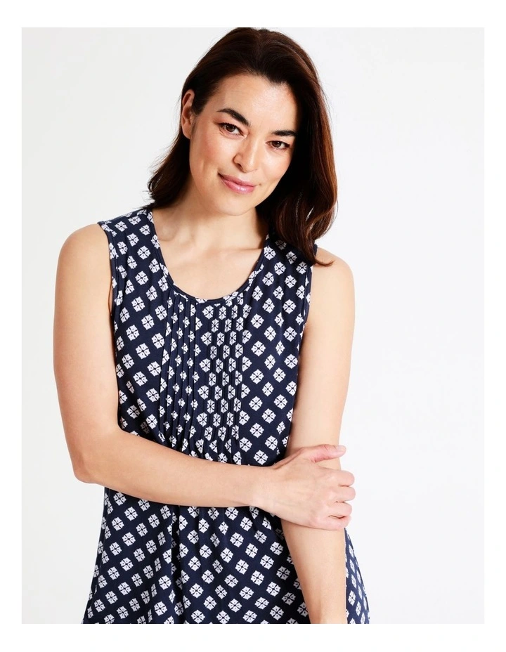 Sleep in style with a sleeveless nightie. This nightie is a relaxed fit, and sports a round neckline and an all-over print.Β Designed with a soft hand feel, you’ll never want to wear anything else.