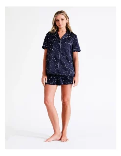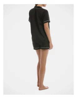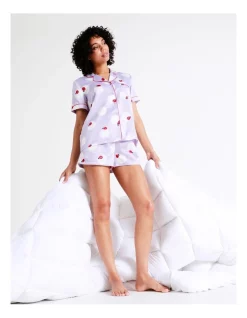 Kick back and relax with a trendy pyjama set. This set is crafted from soft and lightweight materials for comfort, with a V-neckline on the top and a 3/4 length, relaxed fit on the bottoms. Pair with your favourite slippers for maximum comfort.